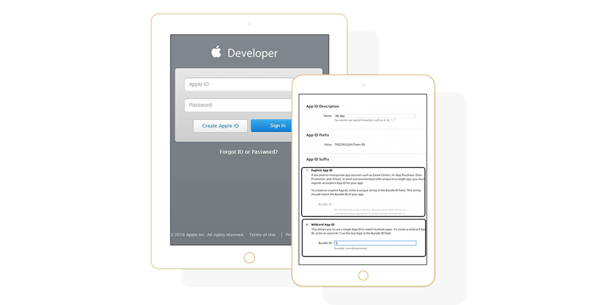 App ID or Application Identifier is a must for every mobile application, it can be of two types: an explicit App ID & a wildcard App ID.