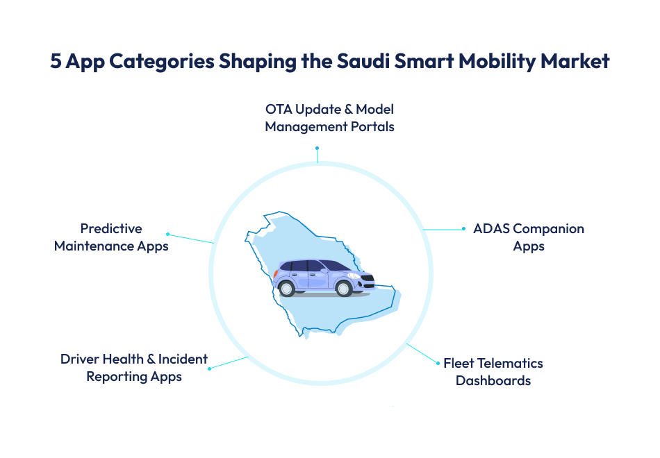 Below are the high-value app categories shaping the Saudi smart mobility market: